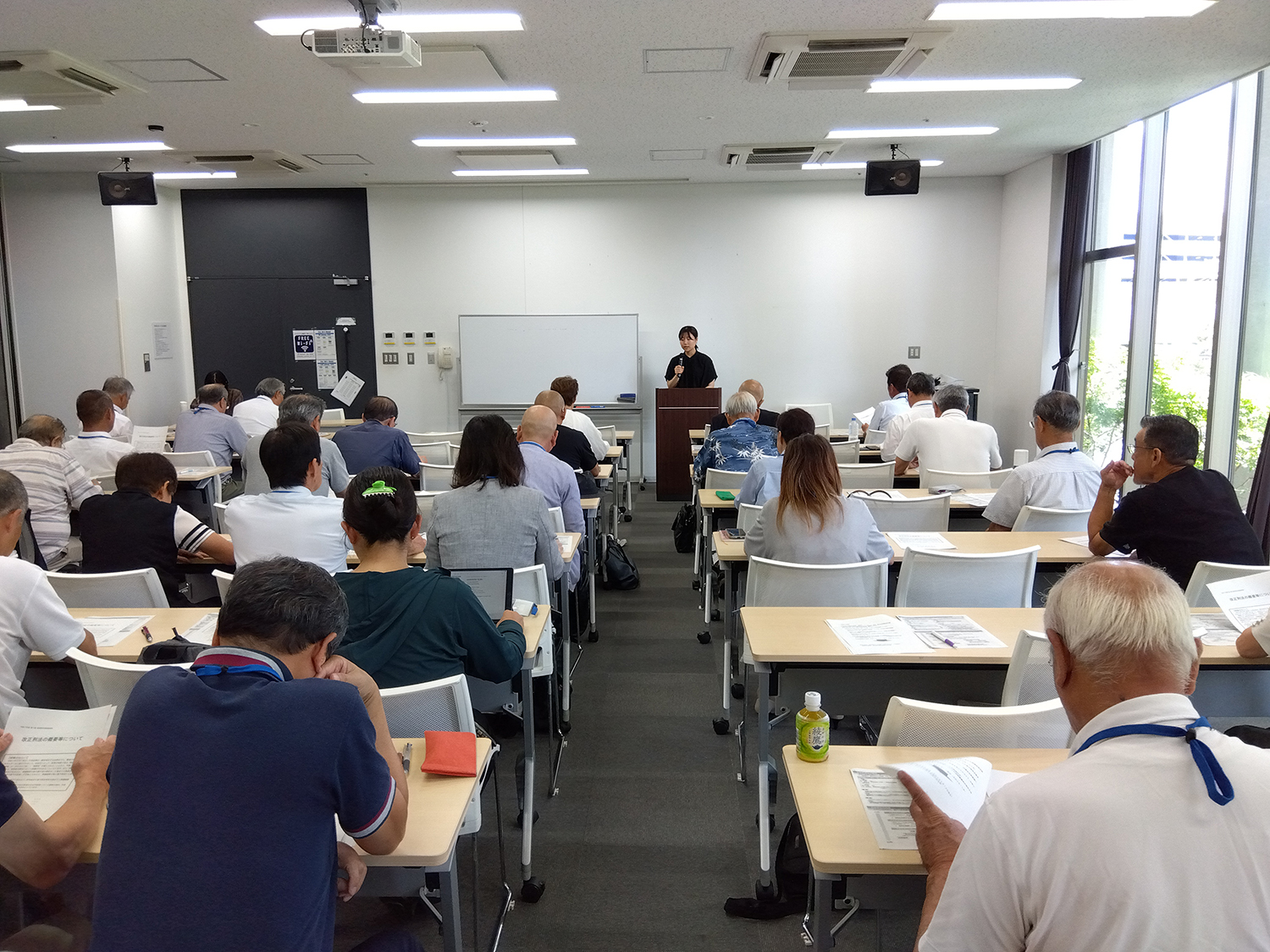 8月20日(水) 午後1時30分から東区なみきスクエアおいて、第2期定例研修が開催され、保護司52名が出席しました。今回は、福岡保護観察所江本観察官が研修テーマ「改正刑法の概要等について」を講義されました。観察所からは柿添観察官も出席され、改正刑法の背景及び経緯、改正事項の主な内容及び拘禁刑下の処遇等について詳細に説明を頂きました。