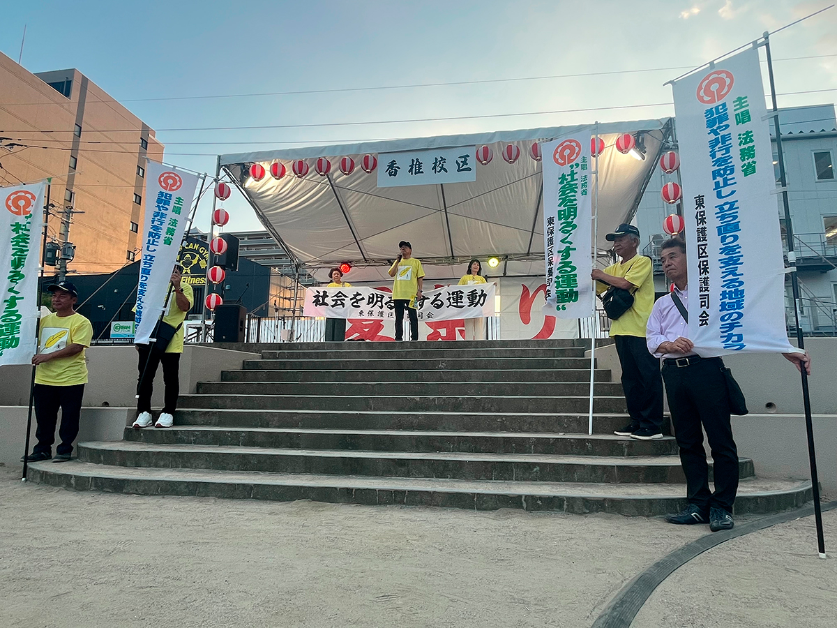 8月23日(土) 午後3時00分から東区香椎駅前西公園において、香椎校区の夏まつりに合わせて、“社会を明るくする運動”地域キャンペーン活動を行いました。
