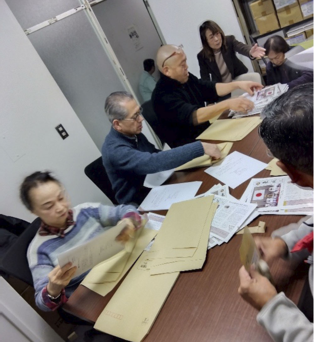 1月14日(水)午前10時30分から、サポートセンター(東区役所内)において、総務部員9名で広報紙・東風59号(令和8年1月1日発行)が出来上がり納入されたので、発送先の仕分けを行い発送しました。