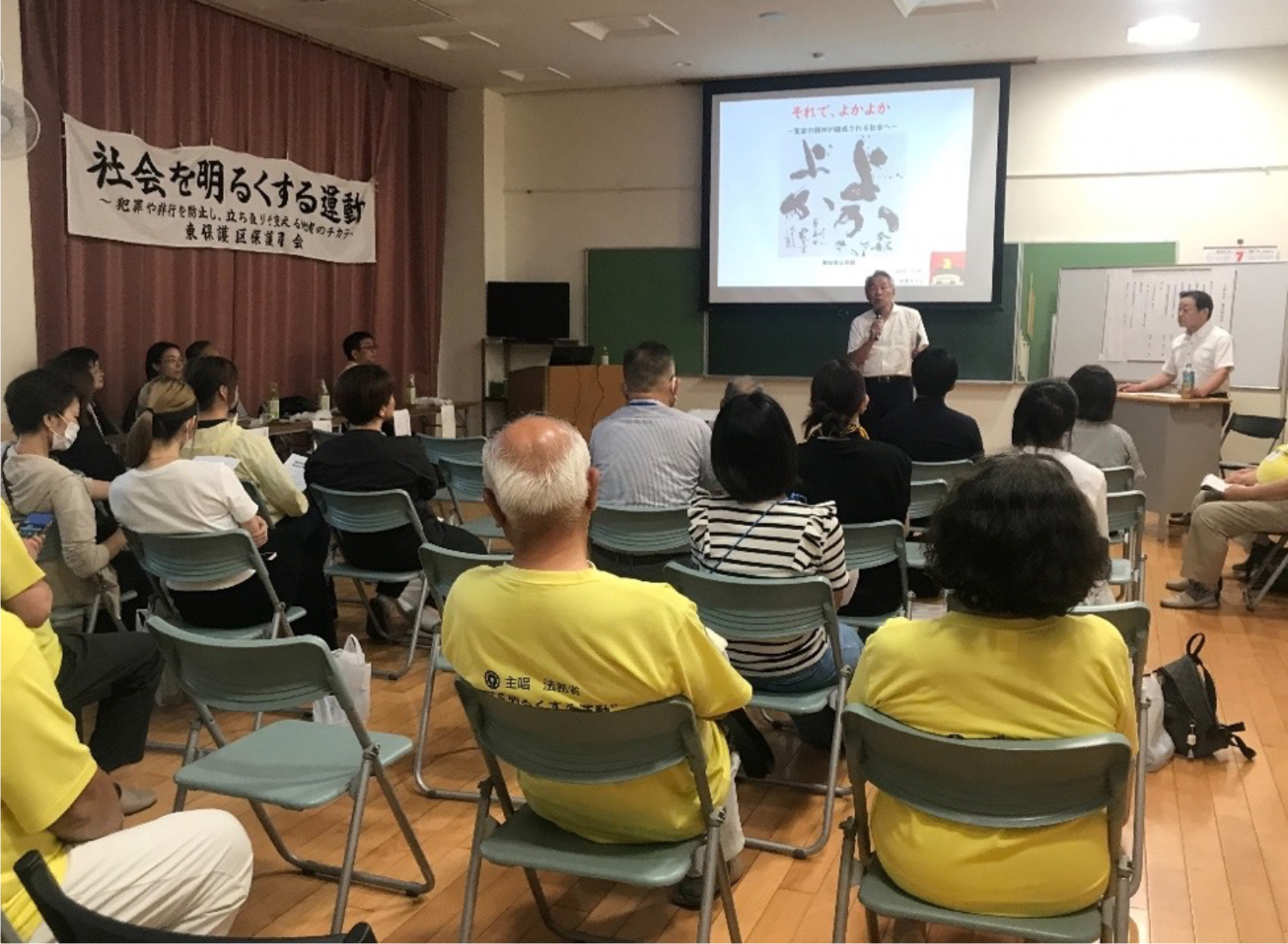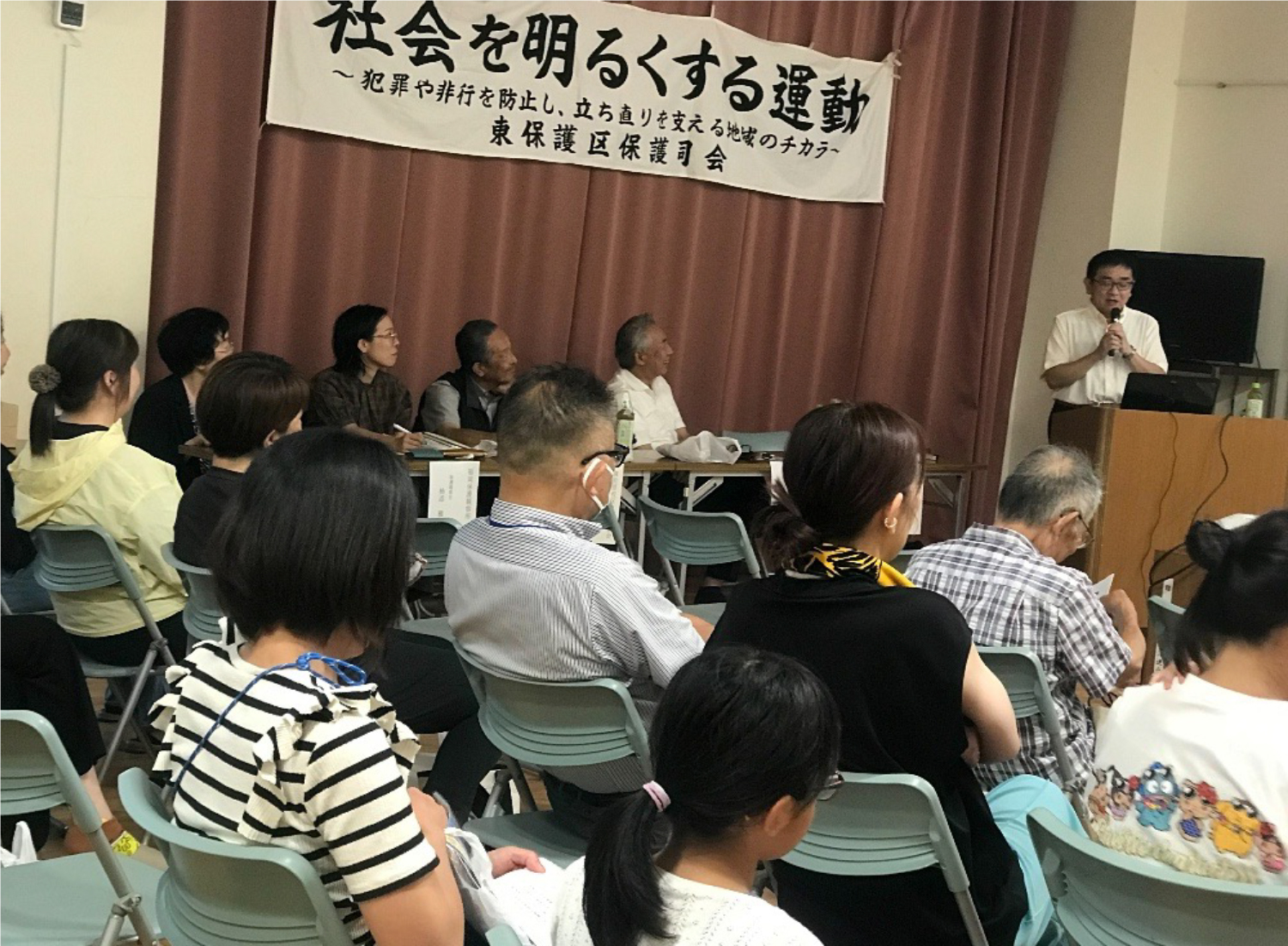 7月25日(金) 午後7時00分から東区舞松原公民館において、保護司15名、福岡保護観察所観察官1名、他地域住民の方20名が参加して地域集会を開催しました。