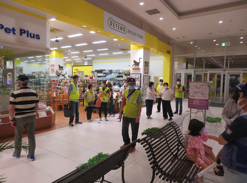 6月10日(金)午後8時から、「イオンモール香椎浜」において、保護司9名と東警察署員、青育連関係者が参加し、地域の夜間パトロールを実施しました。